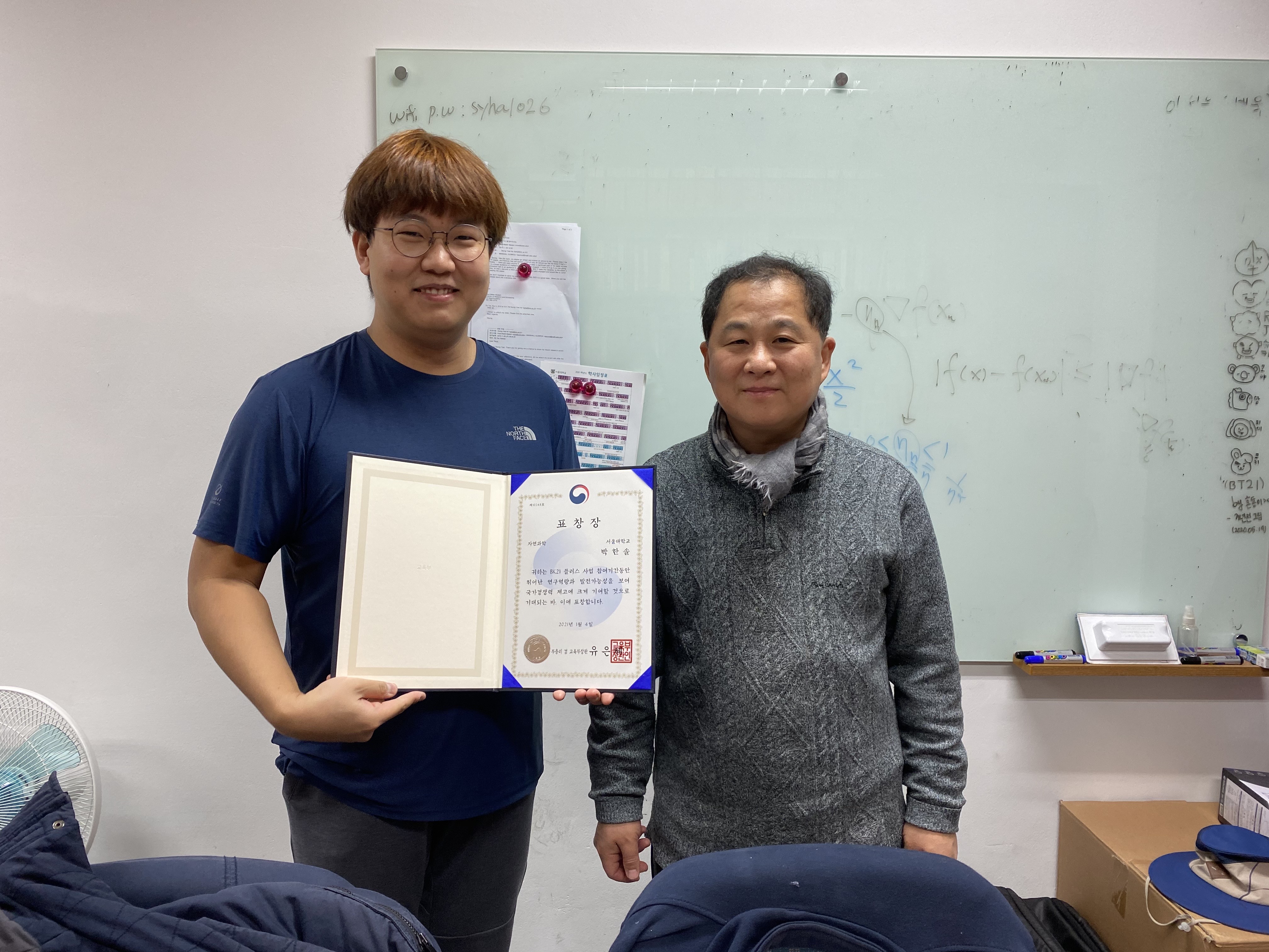 He is awarded a prize which is the Education Minister 유은혜 ‘s Commendation. It is for an excellent researcher of the BK21 Plus project.